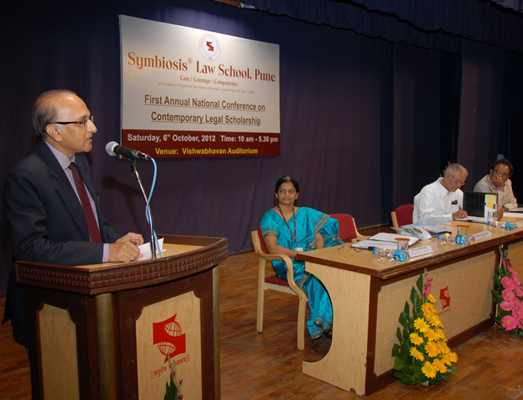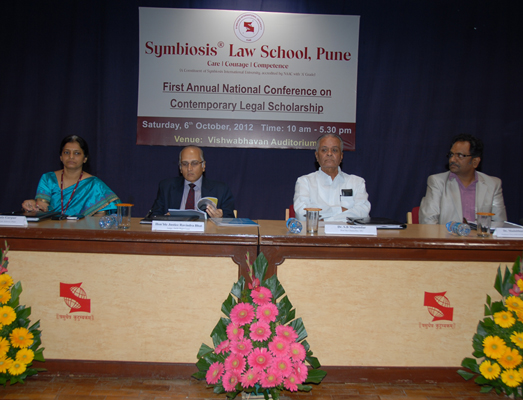 Symbiosis Law School, Pune succesfully organized its First Annual National Conference on Contemporary Legal Scholarship on 6th October 2012, in Vishwabhawan Auditorium from 10:00am to 5:30pm. It was organised in the background of its flagship Journal SCLJ and the student Journal SSLR scheduled to be published with Lexis Nexis, to showcase in house research and to provide platform for such legal research across India