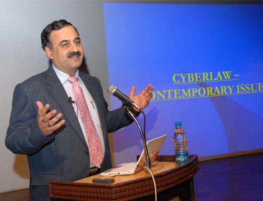 The first speaker of the business session, Adv. Pavan Duggal, while quoting various cases and contemporary issues, stated the necessity to wake up and see where the cyber age is leading us to. He narrated how seemingly ordinary situations invoke provisions under the Information and Technology Act (2000) with the help of cases like the Birthday Cake case and the Sanjay Chaudhury Agra Facebook Post case. He also mentioned some interesting facts by which he turned situations which the audience had already encountered in their lives, into unfamiliar, strange and thought provoking exercises. He also expressed his concerns over growth in cyber crimes and called cyber laws in India a "toothless wonder". He further mentioned that it is the lack of awareness about the consequences of cyber law and a lack of international agreements or harmonious institutional mechanisms that leads the future of cyber laws to a grim, dark and uncertain playground.