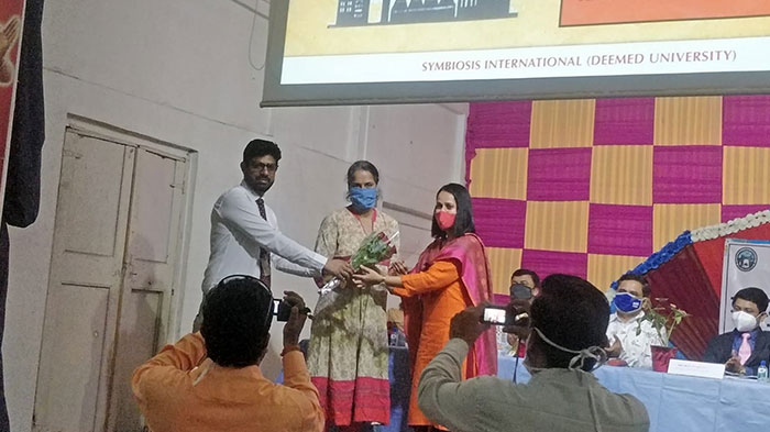 The program began with the Welcome Address delivered by Dr. Snehal Sastakar (Doctor at the Regional Mental Hospital). She introduced her colleagues present on the dais and welcomed the professors of Symbiosis Law School, Pune and felicitated them.