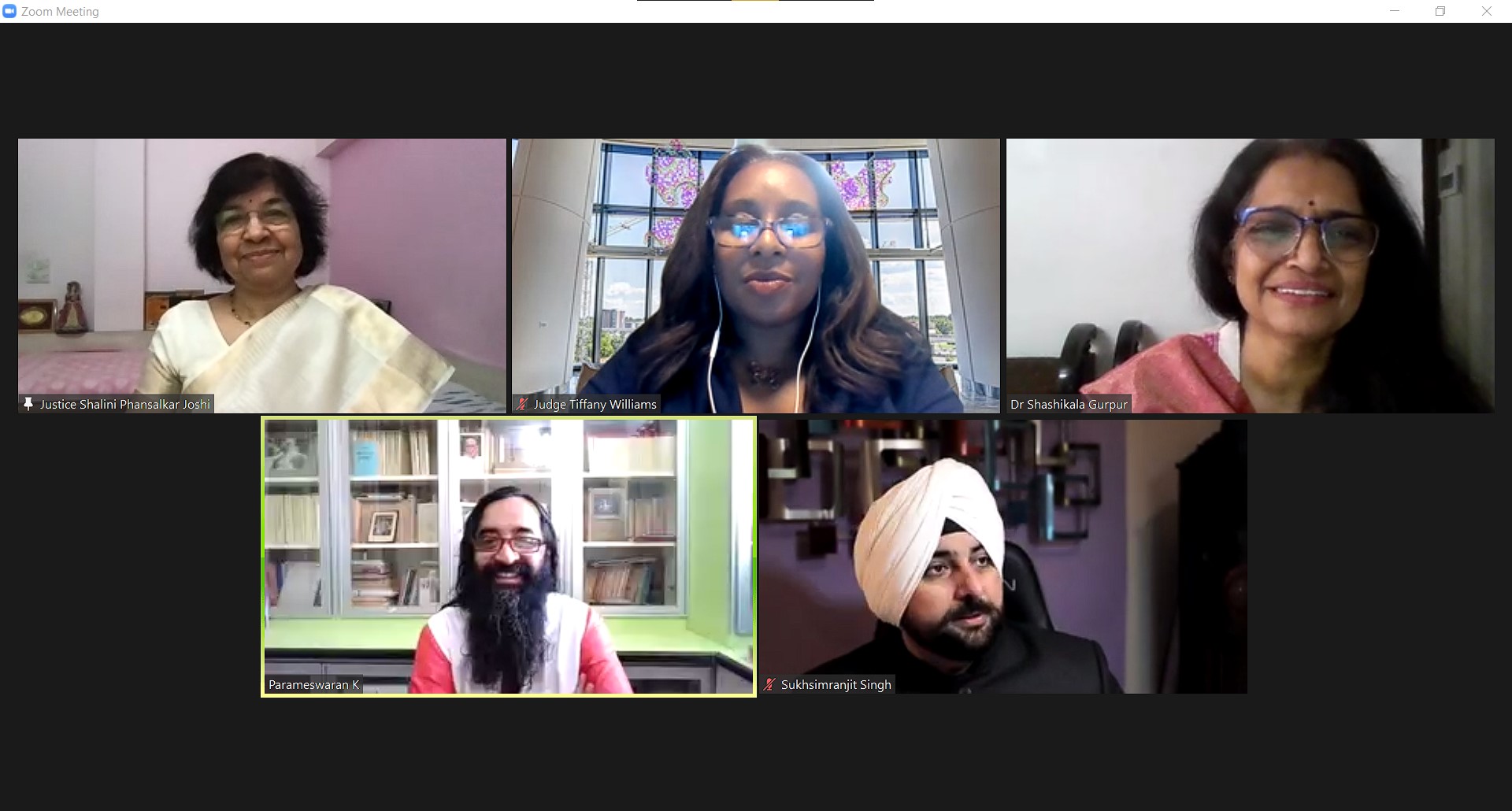 Dr. Shashikala Gurpur, Director, Symbiosis Law School, Pune, Dean, Faculty of Law, SIU, delivered the Welcome Address and introduced the theme. Dr. Gurpur highlighted the status of conflict resolution and how the pandemic became an “opportunity for soul searching”. Dr. Gurpur further elucidated on the sacredness as an essence of the Indian Justice System. She thereafter opened critical questions to the panelists and attendees such as, is Conflict Resolution about Conflict Prevention?; can Gender be considered an ignored factor or a strengthening factor?;and why is the anatomical difference between people made into a negative hierarchical environment? Dr. Gurpur concluded her address by stating that there is a need to find plurality amongst the inconsistencies in different systems.