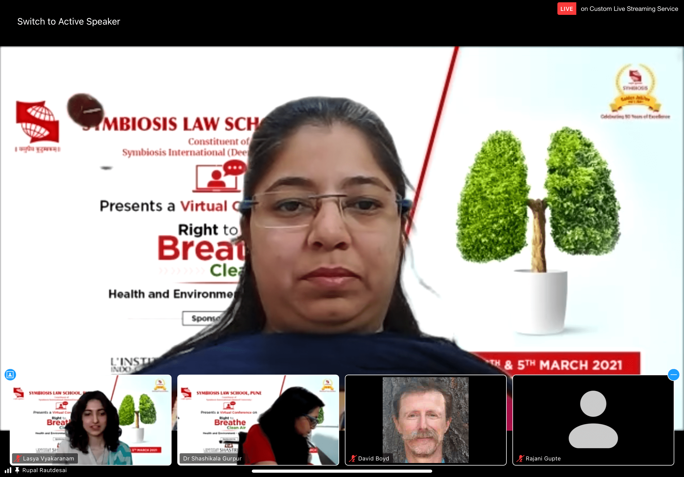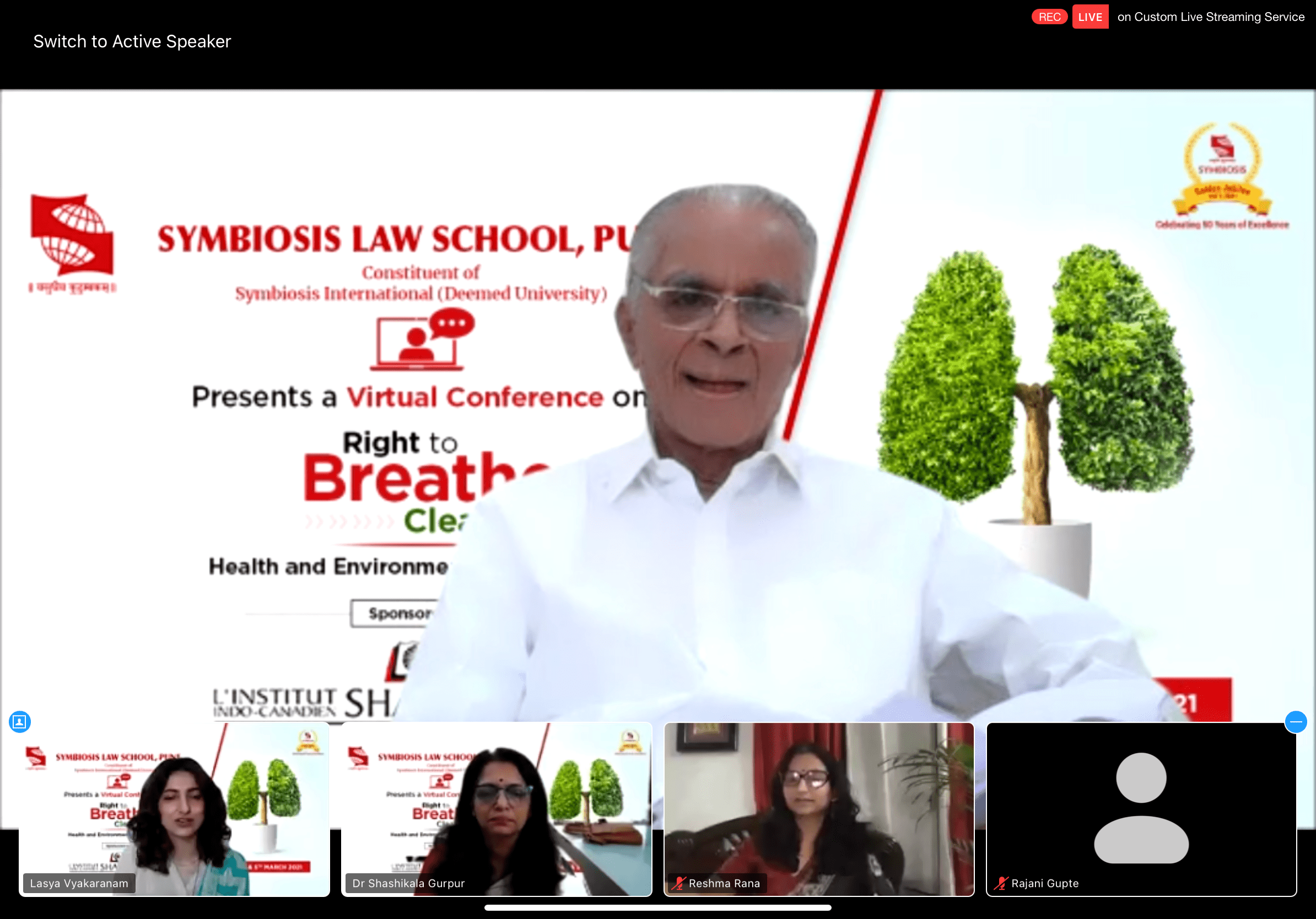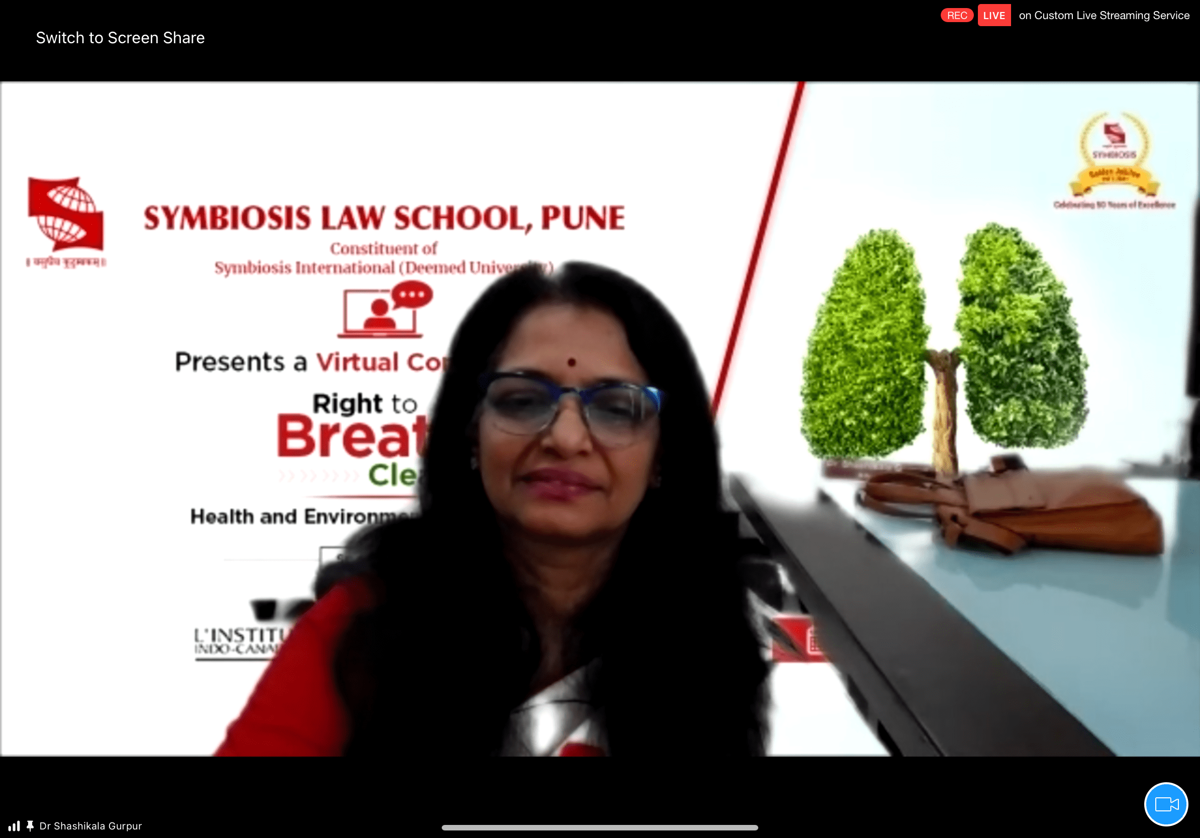 Symbiosis Law School, Pune (SLS-P), a constituent of Symbiosis International (Deemed University) organized the Inaugural Ceremony of the Virtual Conference on ‘Right to Breathe Clean Air: Health and Environment-related SDGs’ on 4th March, 2021 on the virtual platform Zoom, at 10 am. The conference was undertaken in pursuance of the prestigious ‘Conference Grant’ under Golden Jubilee Conference and Lecture Series Grant (GJCLSG), 2021-21 awarded to SLS-P by the Shastri Indo-Canadian Institute, a bi-national organization promoting understanding between India and Canada through academic discourse and exchange.