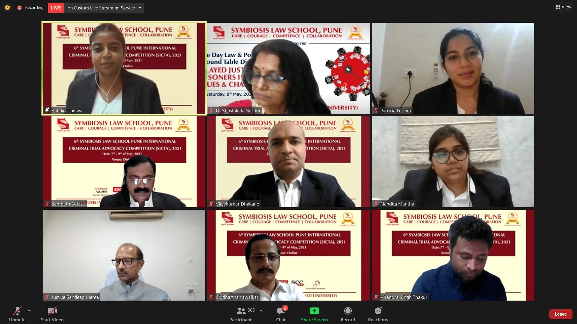 The Valedictory Ceremony was held on 9th May 2021. Dr. Shashikala Gurpur delivered the Welcome Address and discussed SLS-P’s merits in striving to go beyond the regular classroom learning to provide a diversified legal exposure. She declared that every law student is a warrior for justice who ought to use their platform to stand up for justice, and emphasized the role of Law School in preparing students for the global legal forum. She also highlighted SICTA’s monumental role in fostering service competency and lawyering skills in participants. Lastly, Dr. Gurpur congratulated the Student Bar Association for the organisation of the tournament in an effective manner.