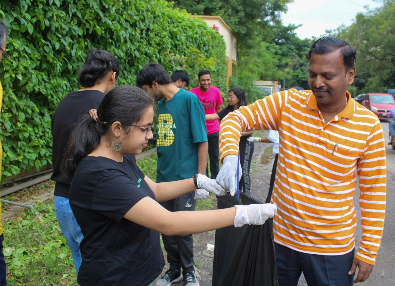 The cleanliness drive began with the volunteers having a photography session with Adar Poonawala Clean City Initiative (APCCI) employees and SLSP & SCWRM staff. Colourful posters were unfurled, and slogans such as ‘Swachh Bharat’ and ‘Swachhata hi Seva’ were raised. Volunteers were divided into teams to cover various areas around the SLSP Campus. One team cleaned the roads till Shubh Gateway, another till Aero Mall and the third team till Konark, Lunkad and Daffodil campuses. Around 100 participants involved in the cleanliness drive covered the area of approximately 3 kms. The volunteers, including faculty, were provided with protective equipment including gloves, masks, brooms and garbage bags to collect wastes in their designated areas.
